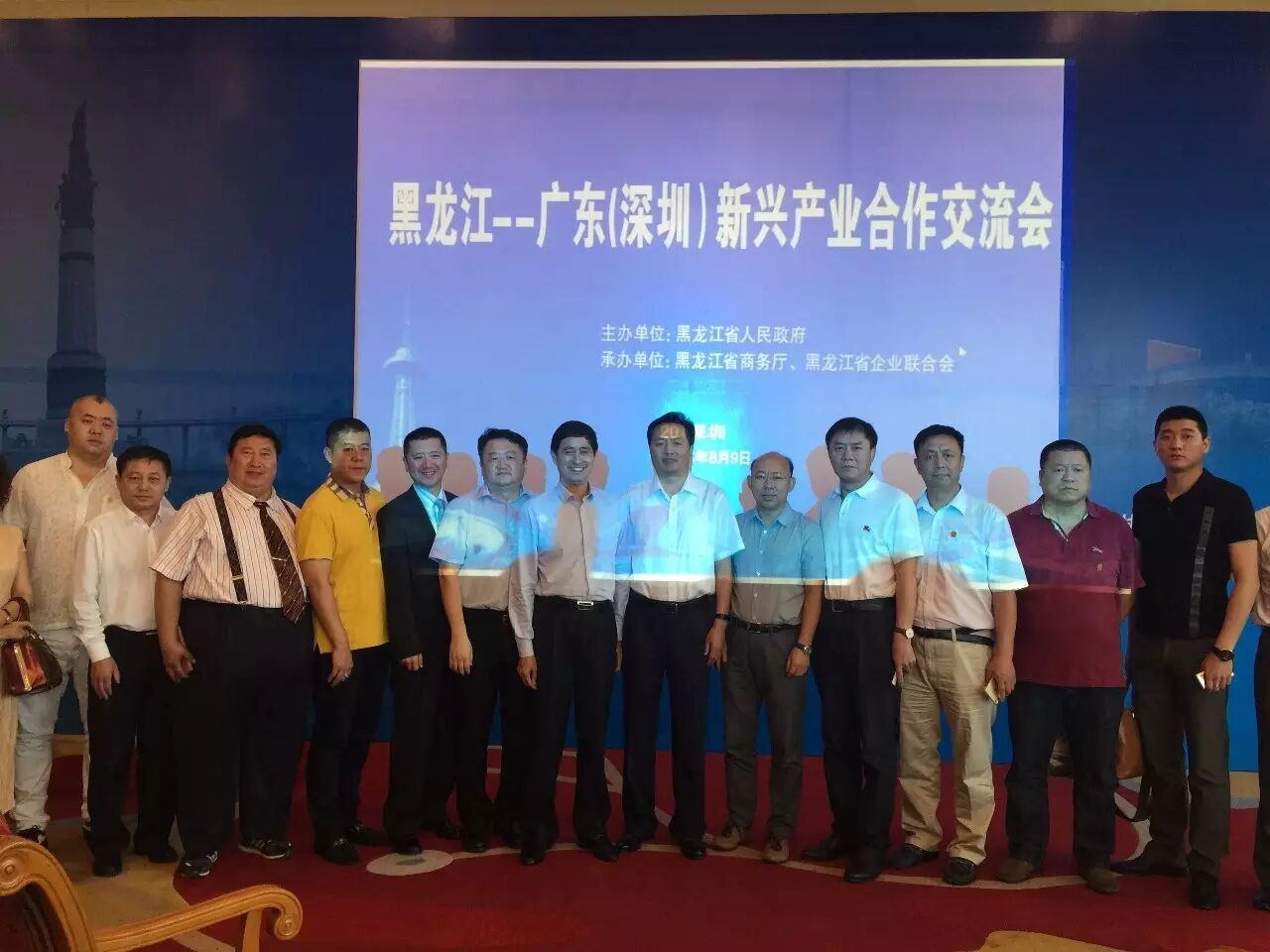 2016年8月9日上午9时30分,由黑龙江省人民政府主办,黑龙江省商务厅、省企业联合会承办的黑龙江——广东(深圳)新兴产业合作交流会在深圳五洲宾馆举办。香港华南城集团、中国燃气控股等80余家龙港粤企业参会。省相关厅局、十三个地市、省农委、省森工招商代表及企业代表出席。我会会长张佳华,副会长陈敬新等参加本次交流会。