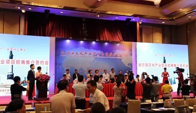 12日下午,哈尔滨文化产业项目招商推介签约会在文博会上举行。哈市就近60个涵盖文化休闲娱乐服务、工艺美术品生产、文化创意和设计服务、文化信息传输服务、文化艺术服务、文化用品生产以及新闻出版发行等方面的文化产业项目进行招商推介。第33届哈尔滨之夏音乐会等9个文化产业项目现场推介,极光新媒体创业空间等20个项目现场签约,签约金额高达43.17亿元,创历史新高。